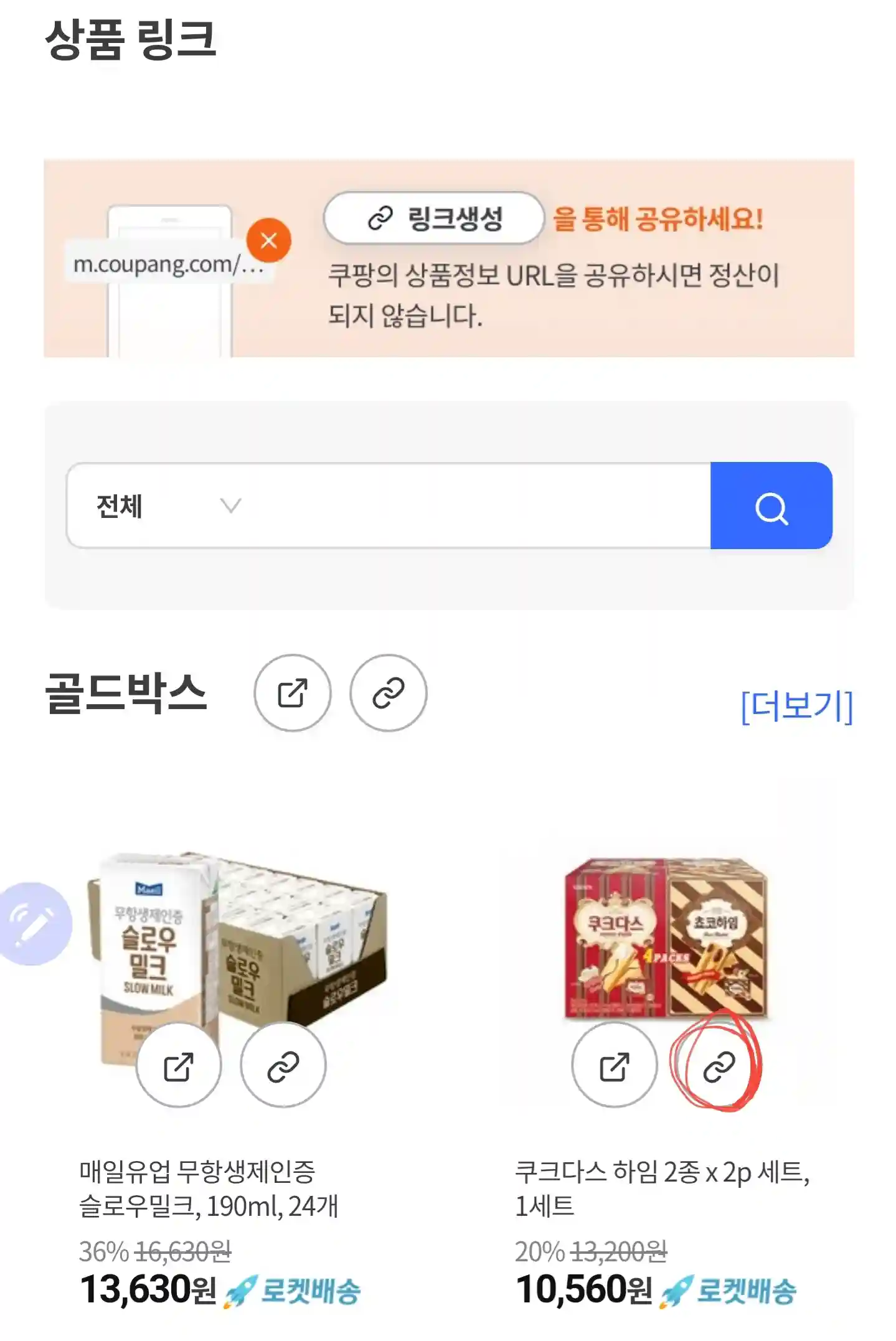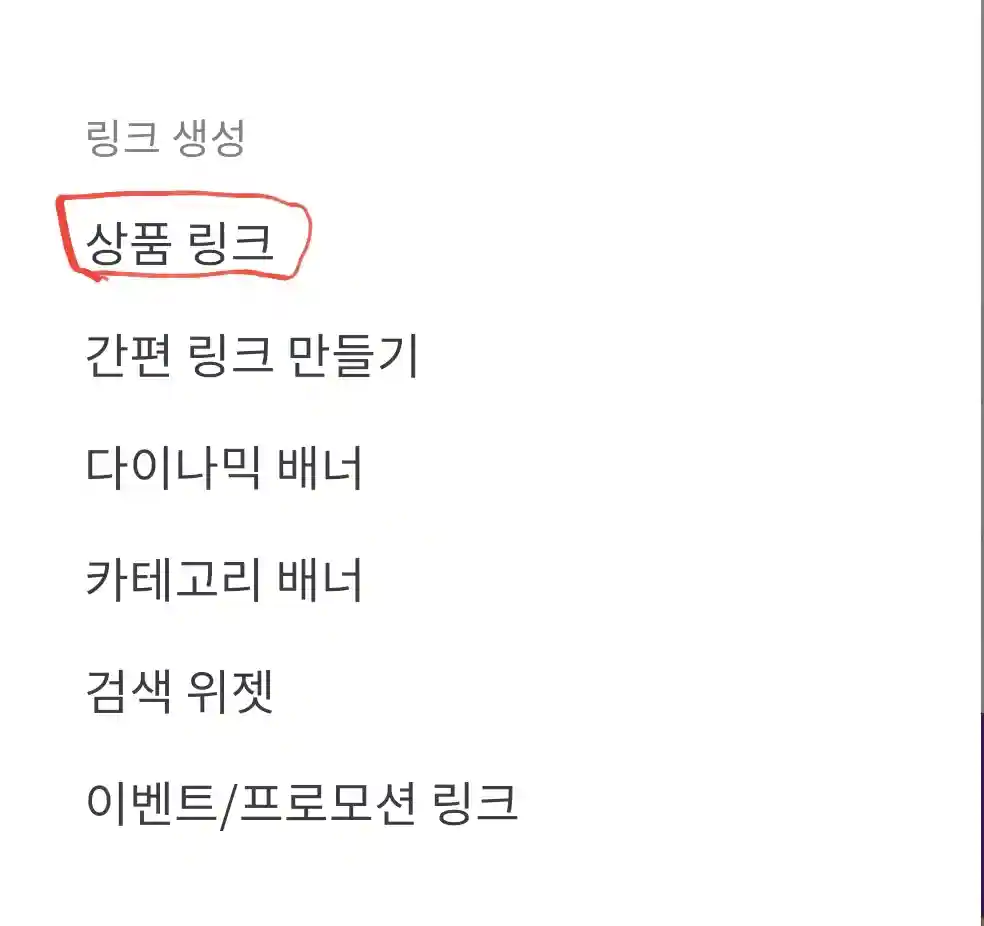 3. 두 번째 탭의 링크 생성 상품 링크를 선택합니다.