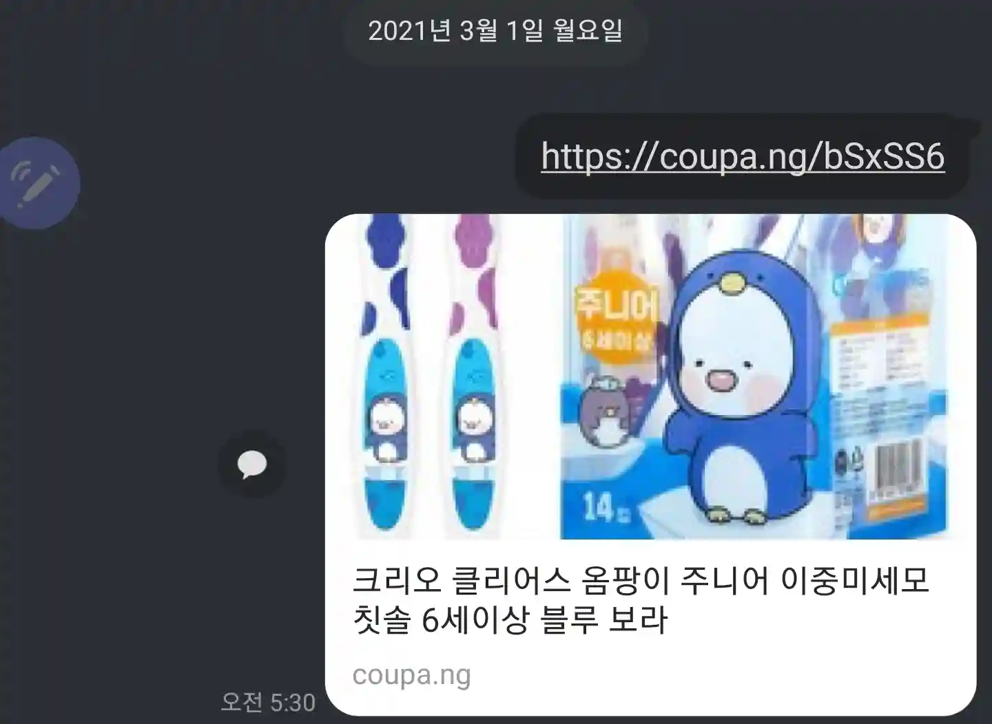 * 약간의 팁을 드리자면, 개인 채팅방에 공지로 쿠팡 링크를 띄워두고 거기로 접속해서 물건을 구매하세요.