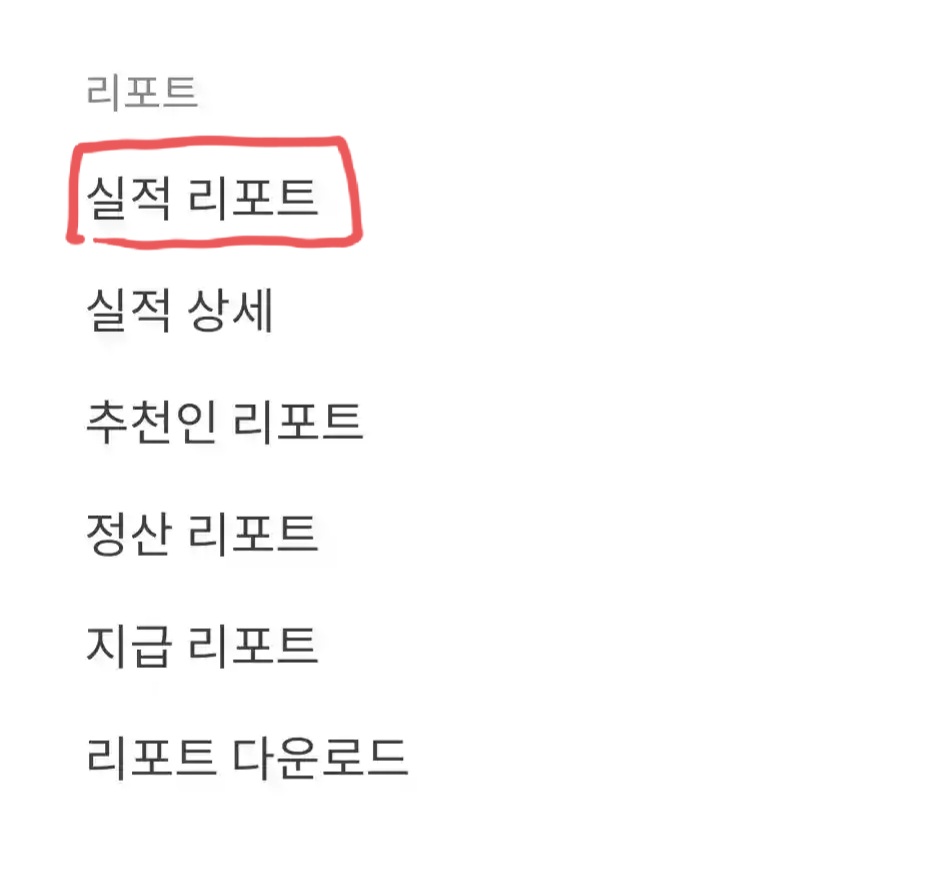 2. 리포트 -> 실적 리포트를 선택합니다.