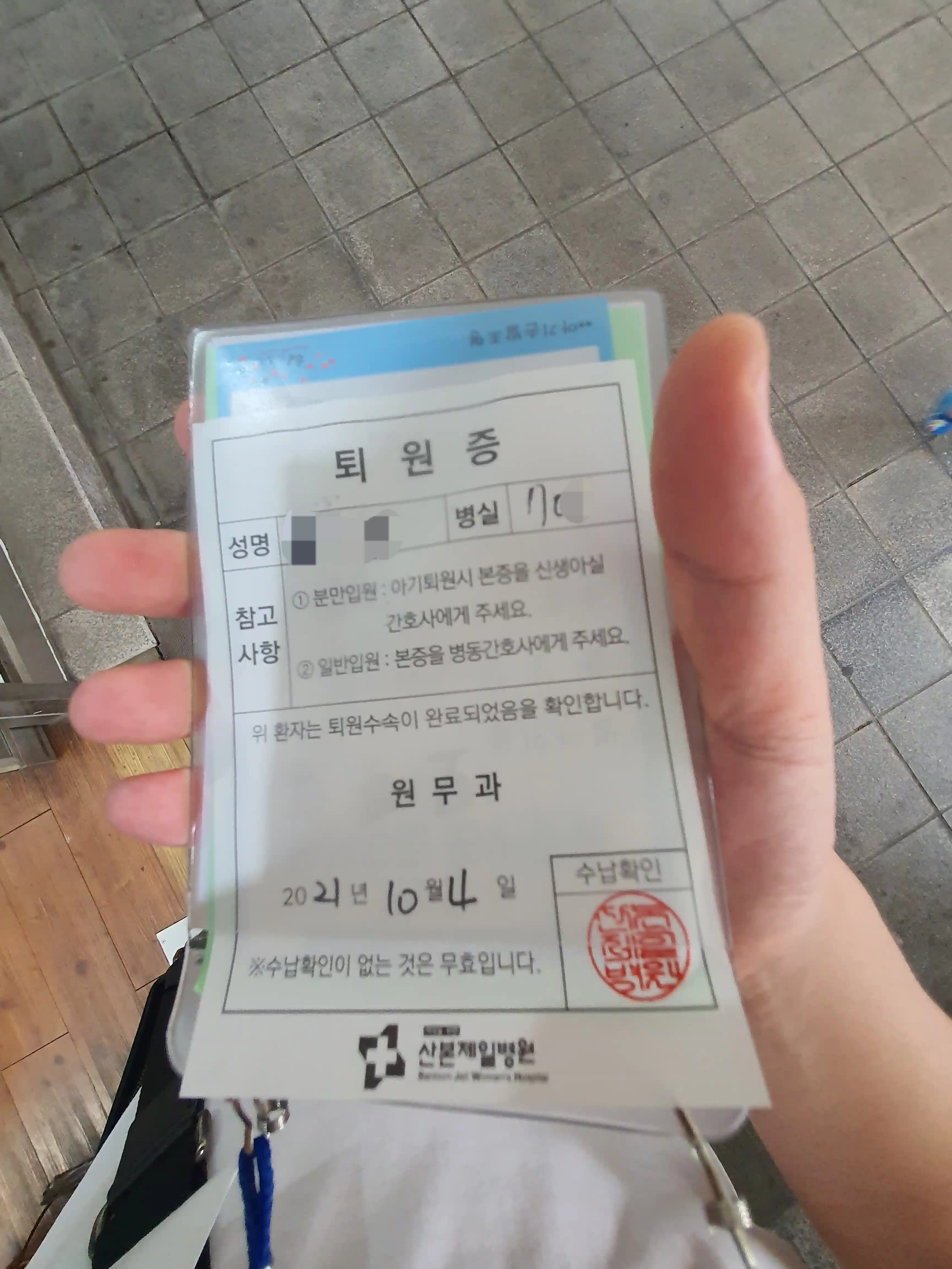 계산을 하면 퇴원증을 발급해주십니다.