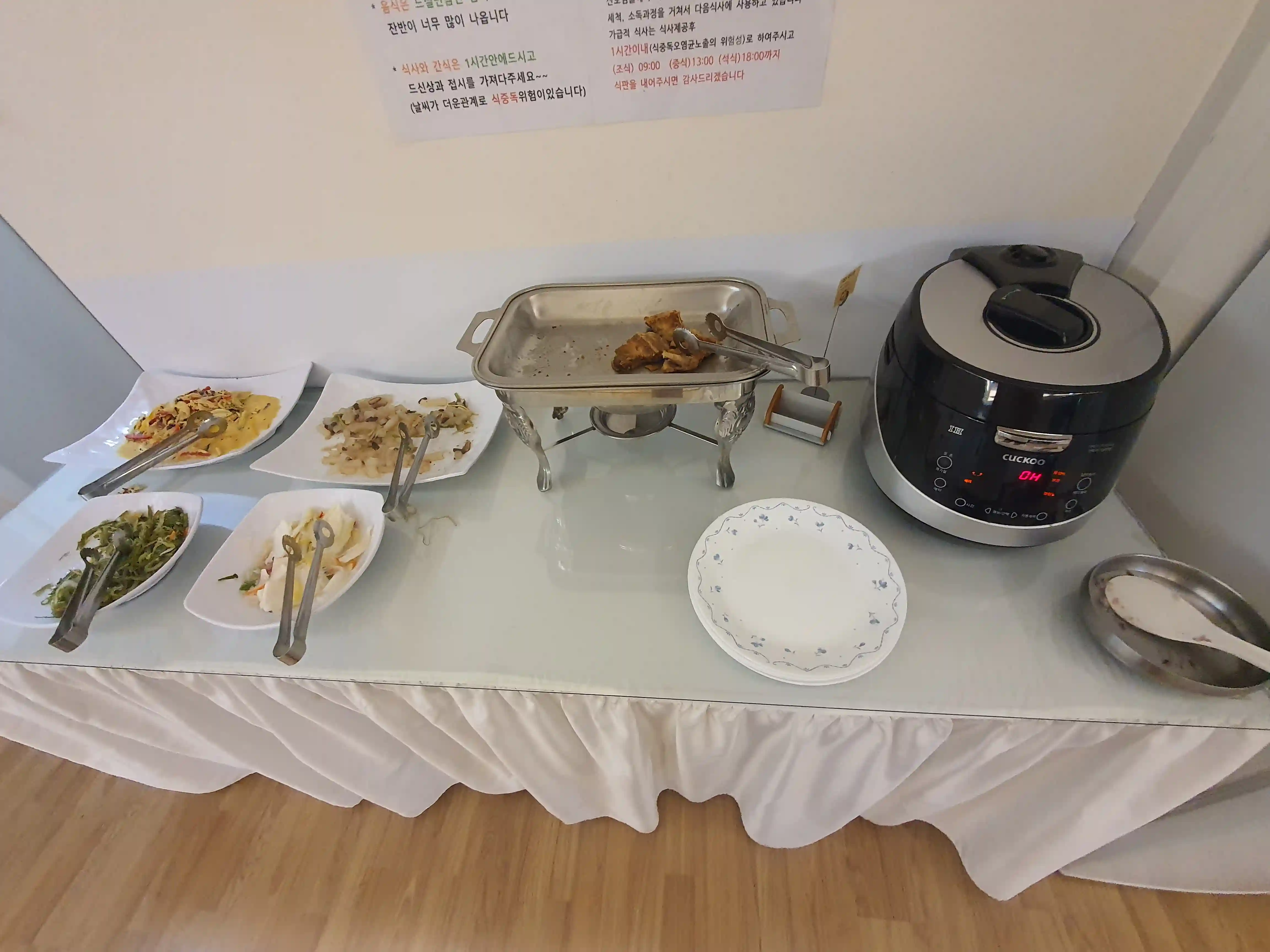 시간 되면 가서 원하는 만큼 그릇에 덜어와서 방에서 먹으면 됩니다.