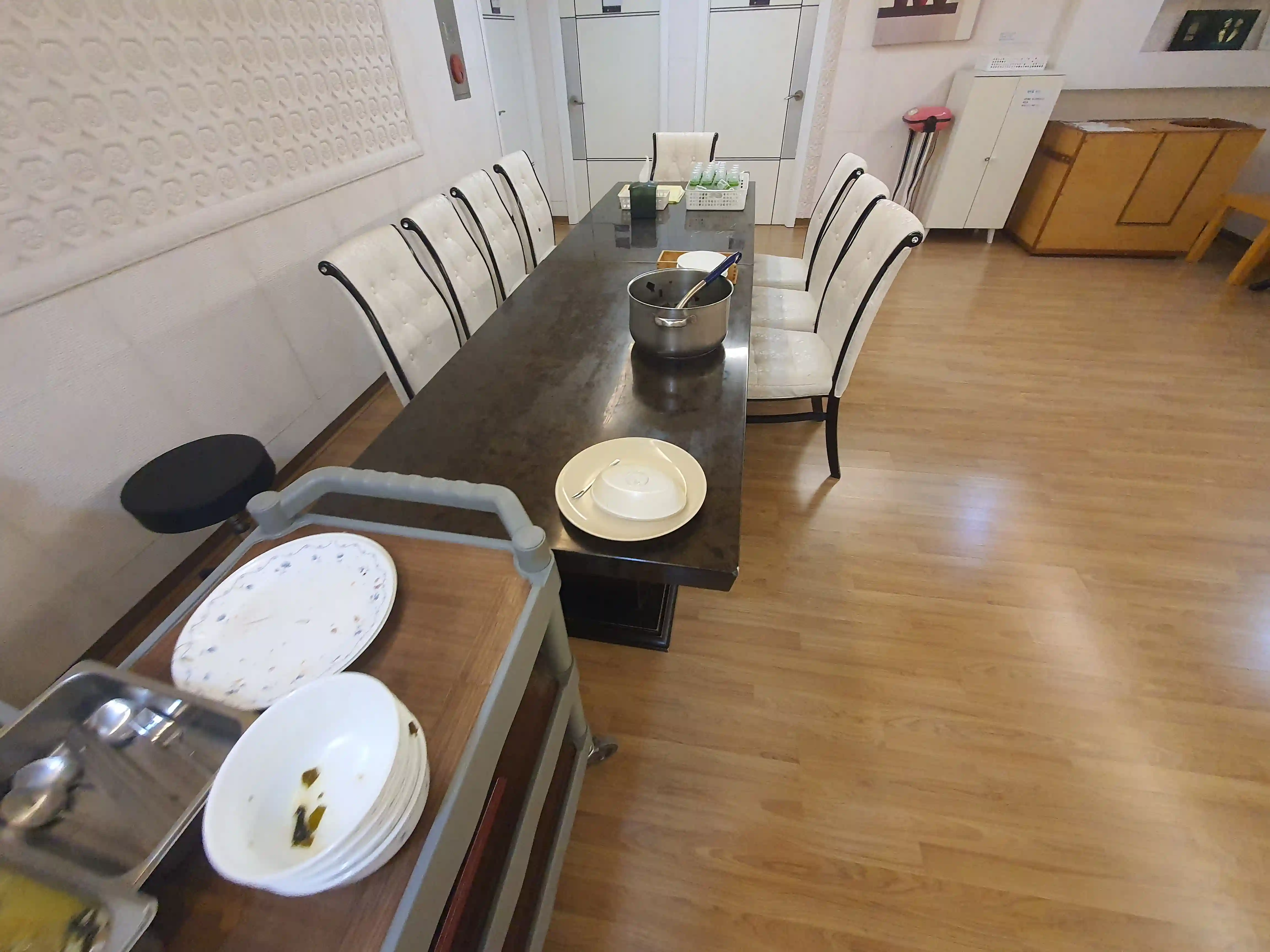 식사를 마치면 카트 위에 그릇을 놓으면 됩니다.