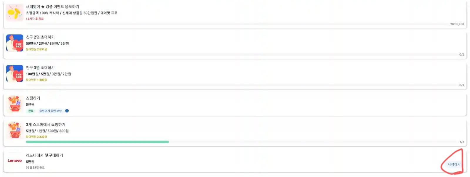 이번 달의 경우 쇼핑을 할 경우 5,000원을 적립해주는 이벤트가 있었습니다.