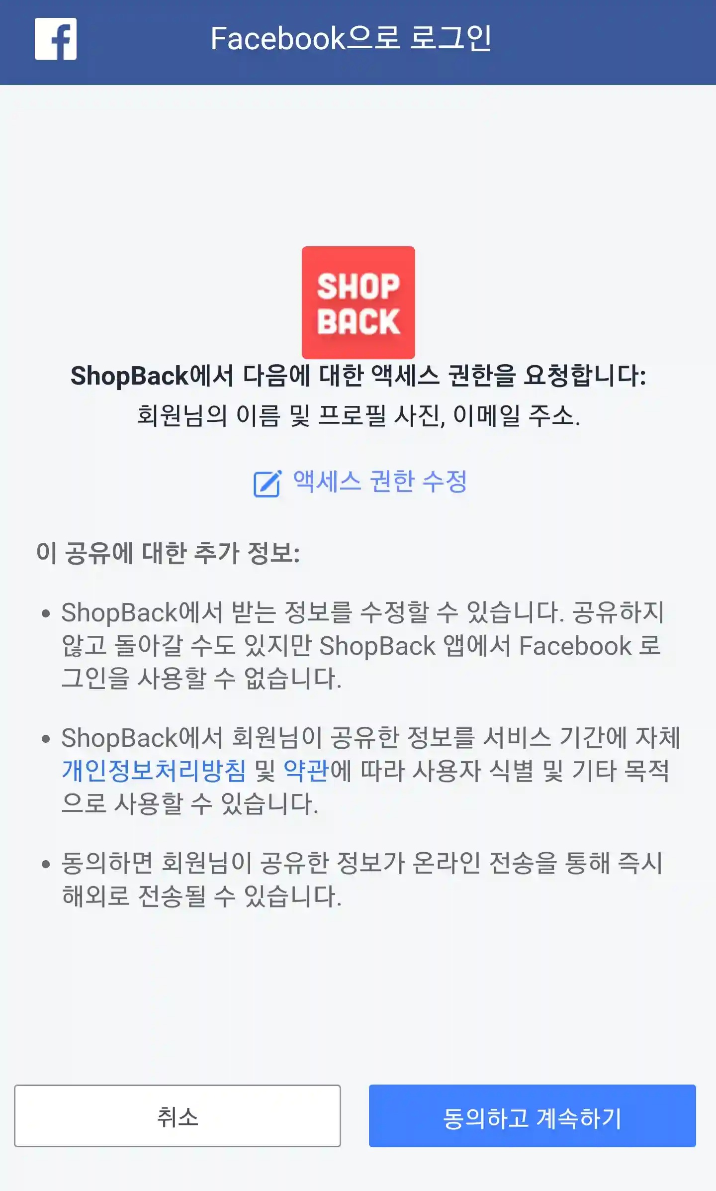 샵백은 페이스북 또는 네이버 로그인을 지원하고 있으니 둘 중 편한 것으로 아이디를 만드시면 됩니다.