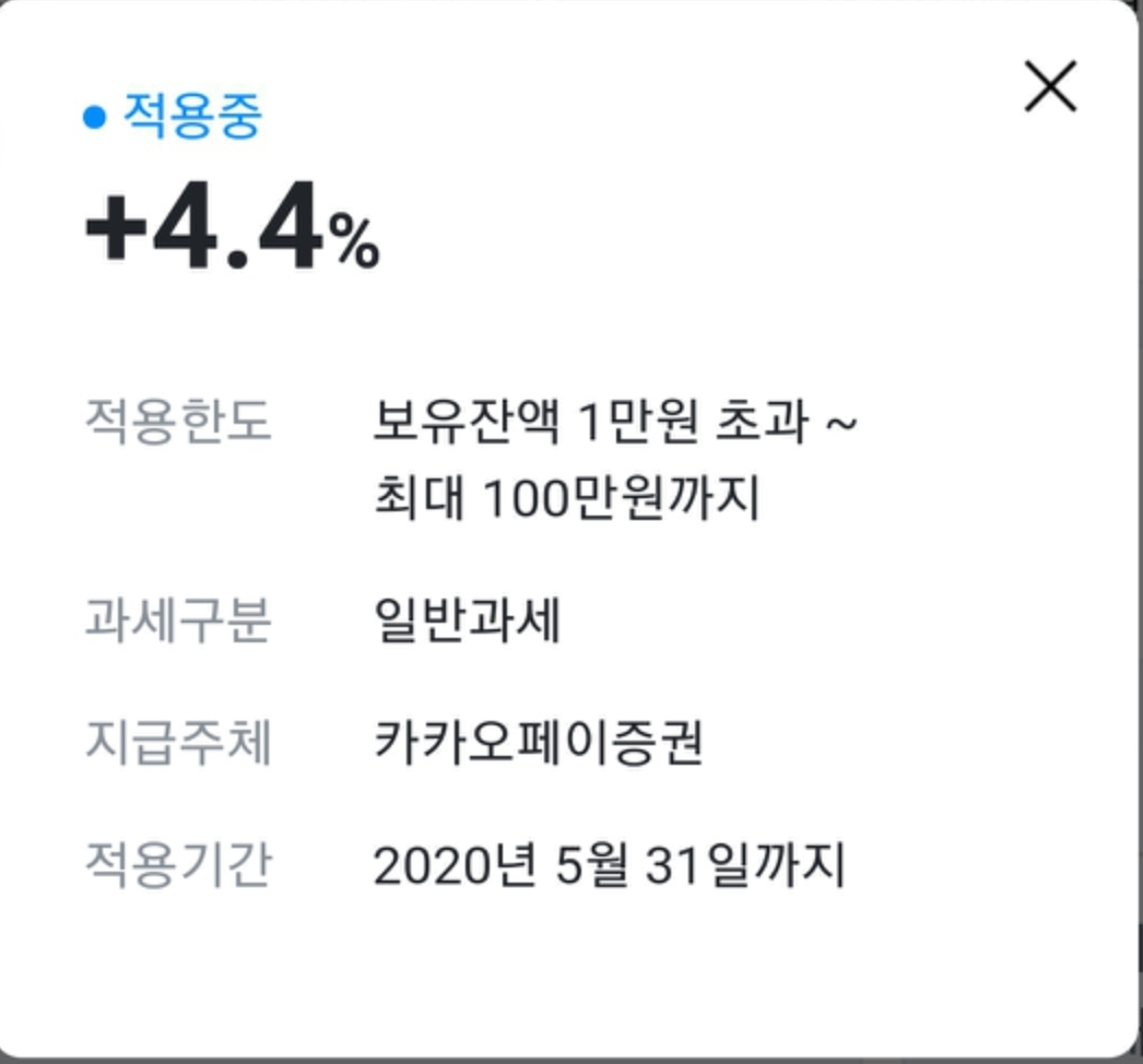 -> 증권계좌로 업그레이드를 하면 매주 월요일마다 연 5%의 금액을 이자로 주는 이벤트를 진행 중이다.