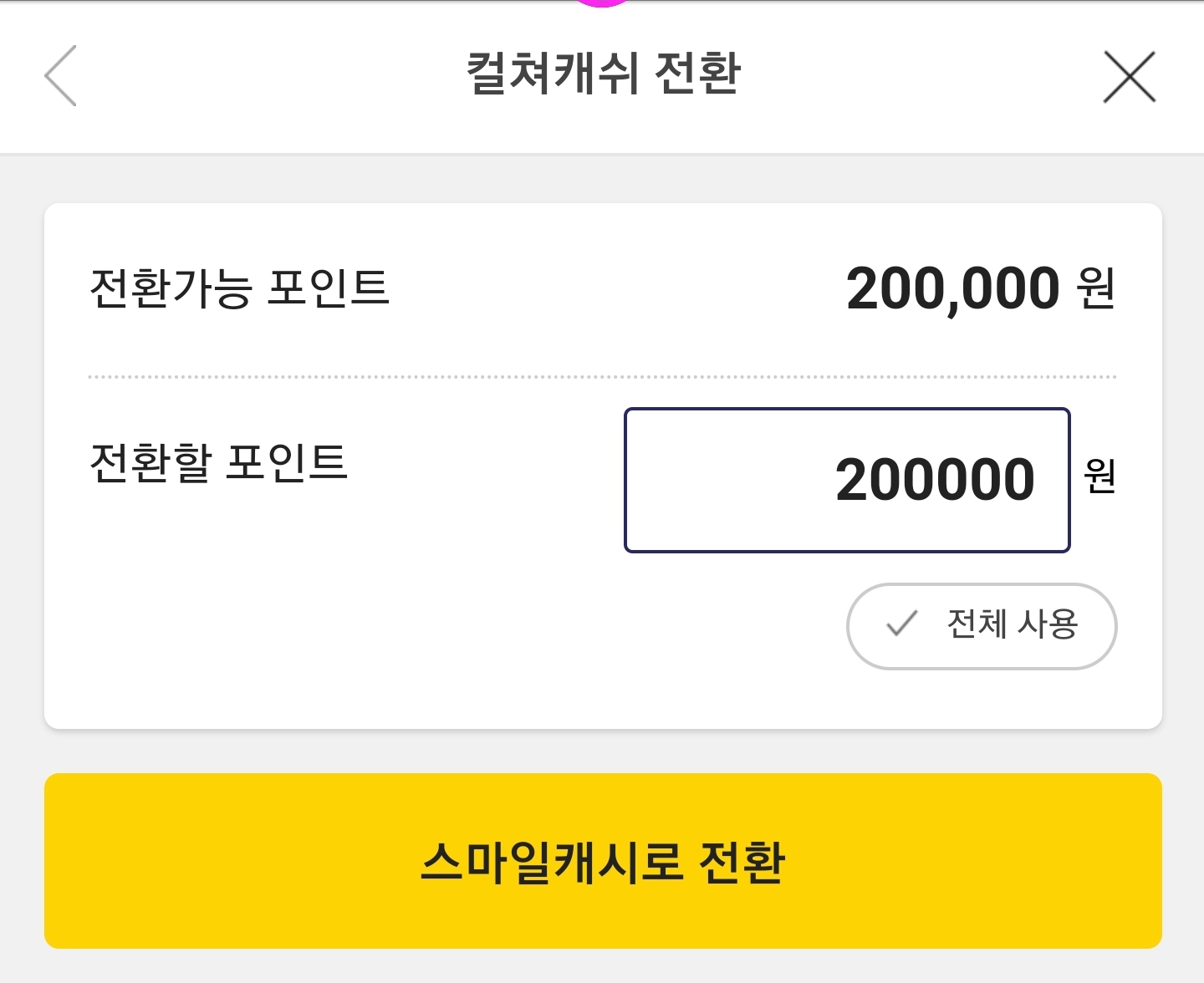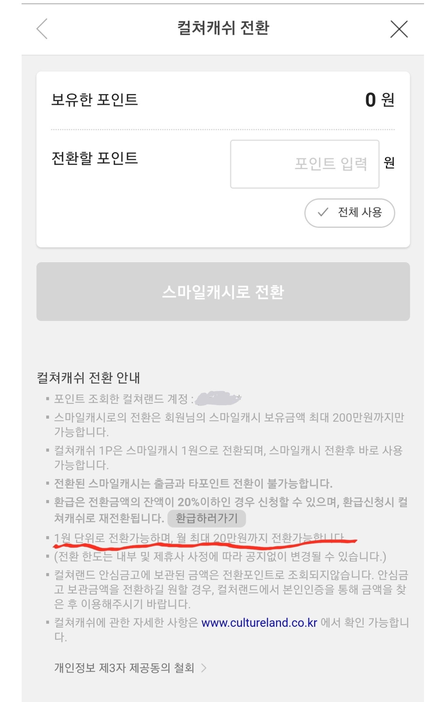 6. 전환할 포인트 입력 후 스마일 캐시 전환 선택