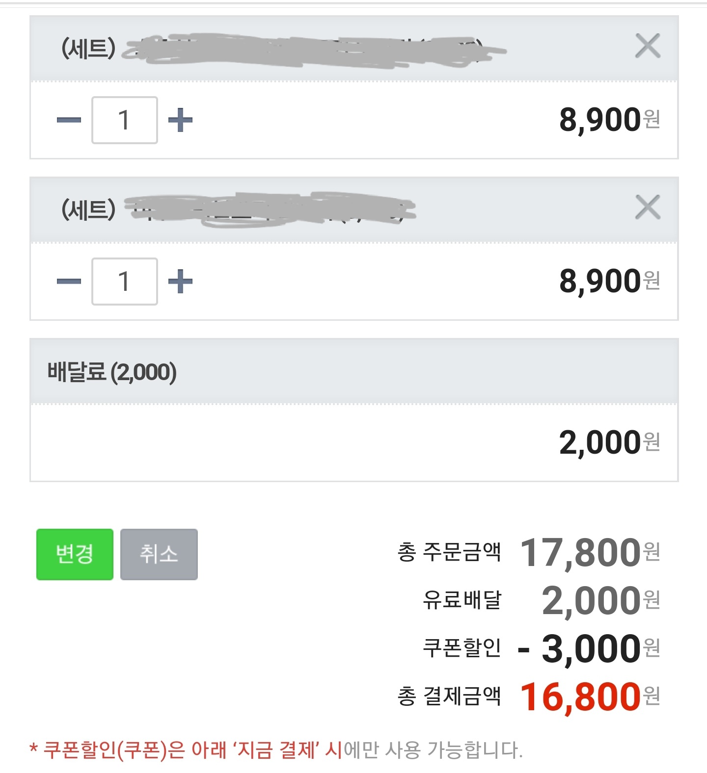 2. 주문할 상품 선택 및 3천 원 할인 쿠폰 수령