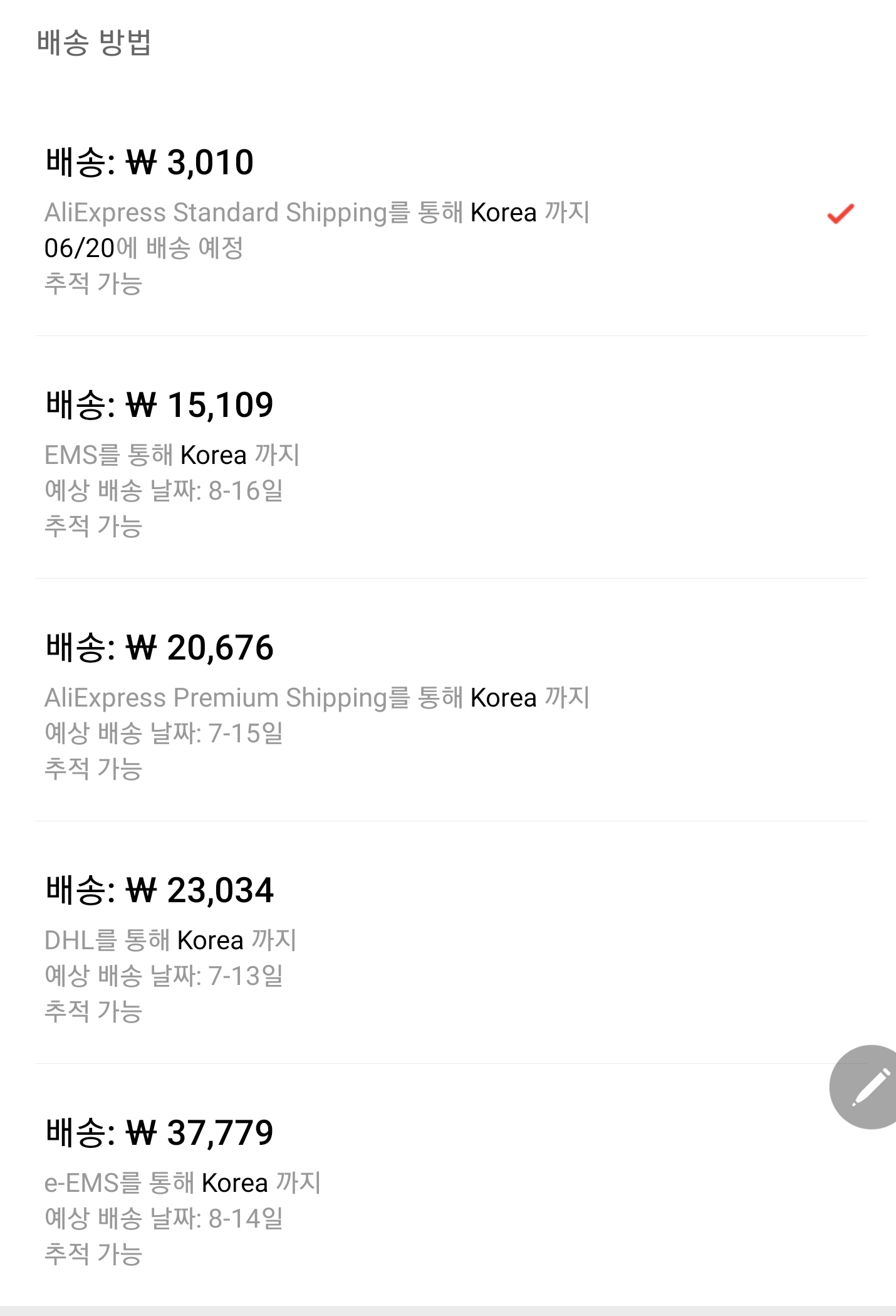 알리에서 빠르게 물건을 받기를 원하면, 배송비를 내면 된다.