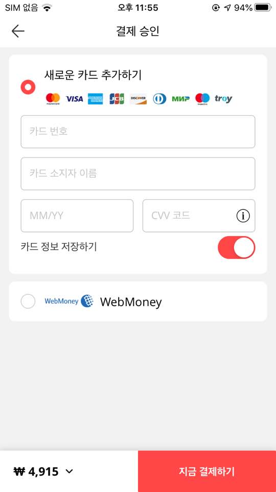 7. 카드번호 입력 후 하단 지금 결재하기 선택